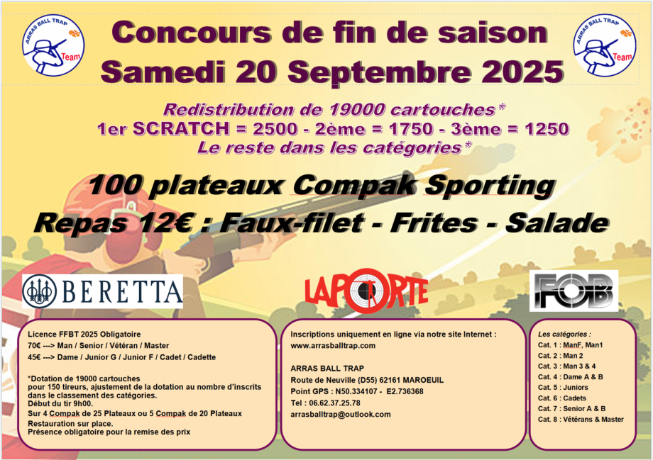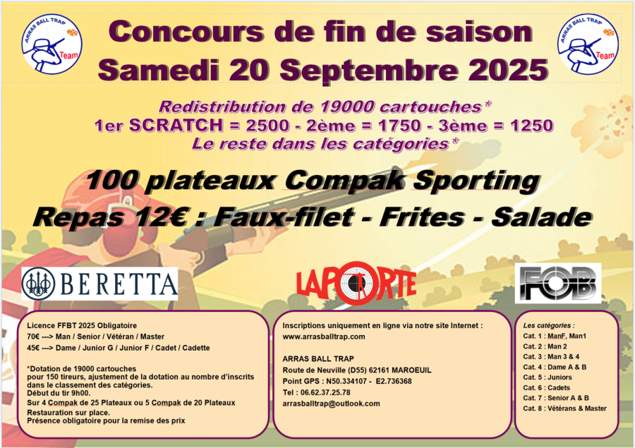 Inscriptions aux compétitions d'ARRAS BALL TRAP 2025
